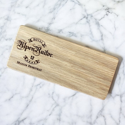 Badge personnalisé en bois gravé