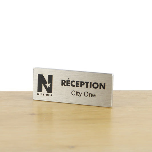 Badge aluminium argent Brossé à insert - Double Lignes - 7 x 3,5 cm