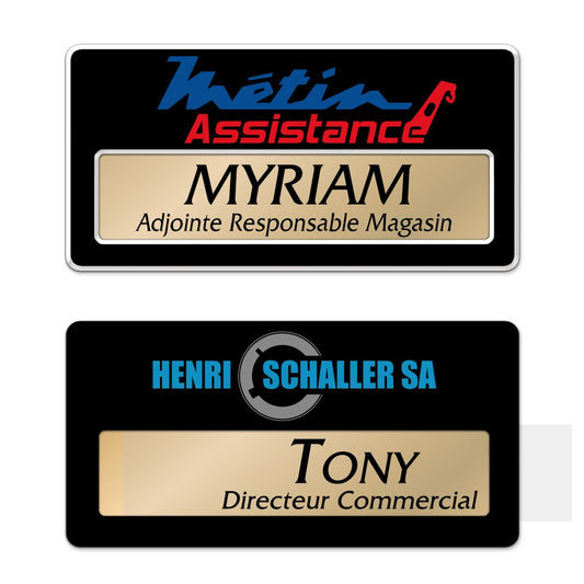 Badge aluminium Laqué Noir à insert - Double Lignes - 7 x 3,5 cm