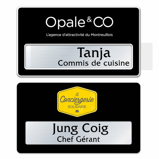 Badge aluminium Laqué Noir à insert - Double Lignes - 7 x 4 cm