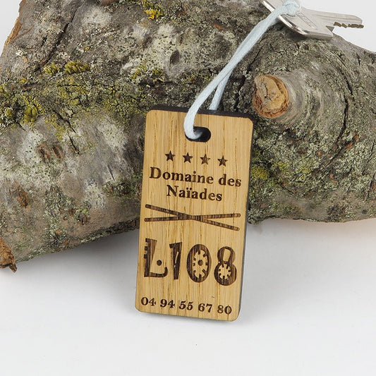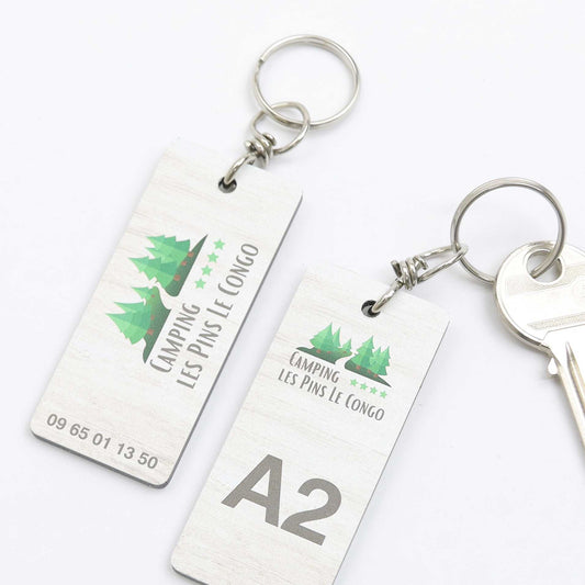 Porte-clé CréoBois 6 x 3 cm - Écologique et personnalisé pour villages vacances