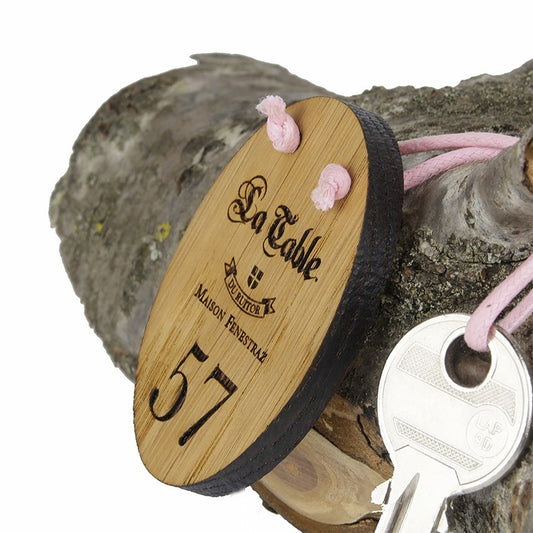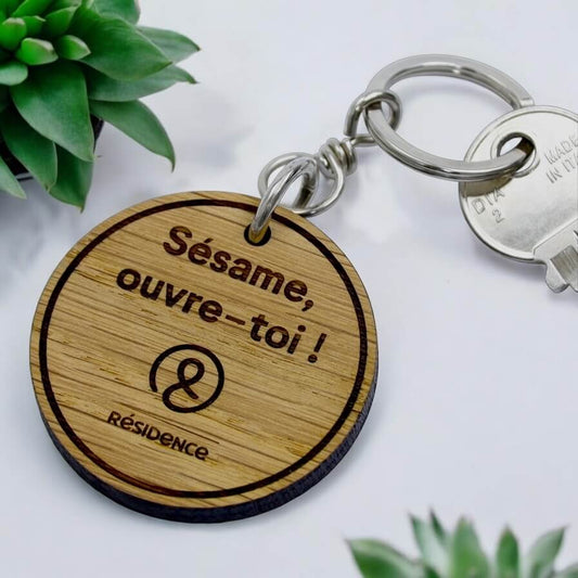 Porte-clé CréoBois rond 50 mm - Écologique et personnalisé pour résidences de vacances