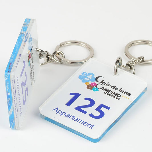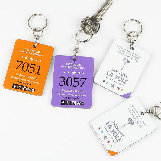 Porte-clé carré arrondi 50 x 50 mm - Léger et économique pour campings