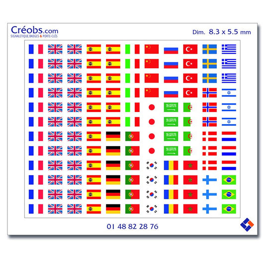 132 Drapeaux Adhésif pour badges - 23 pays